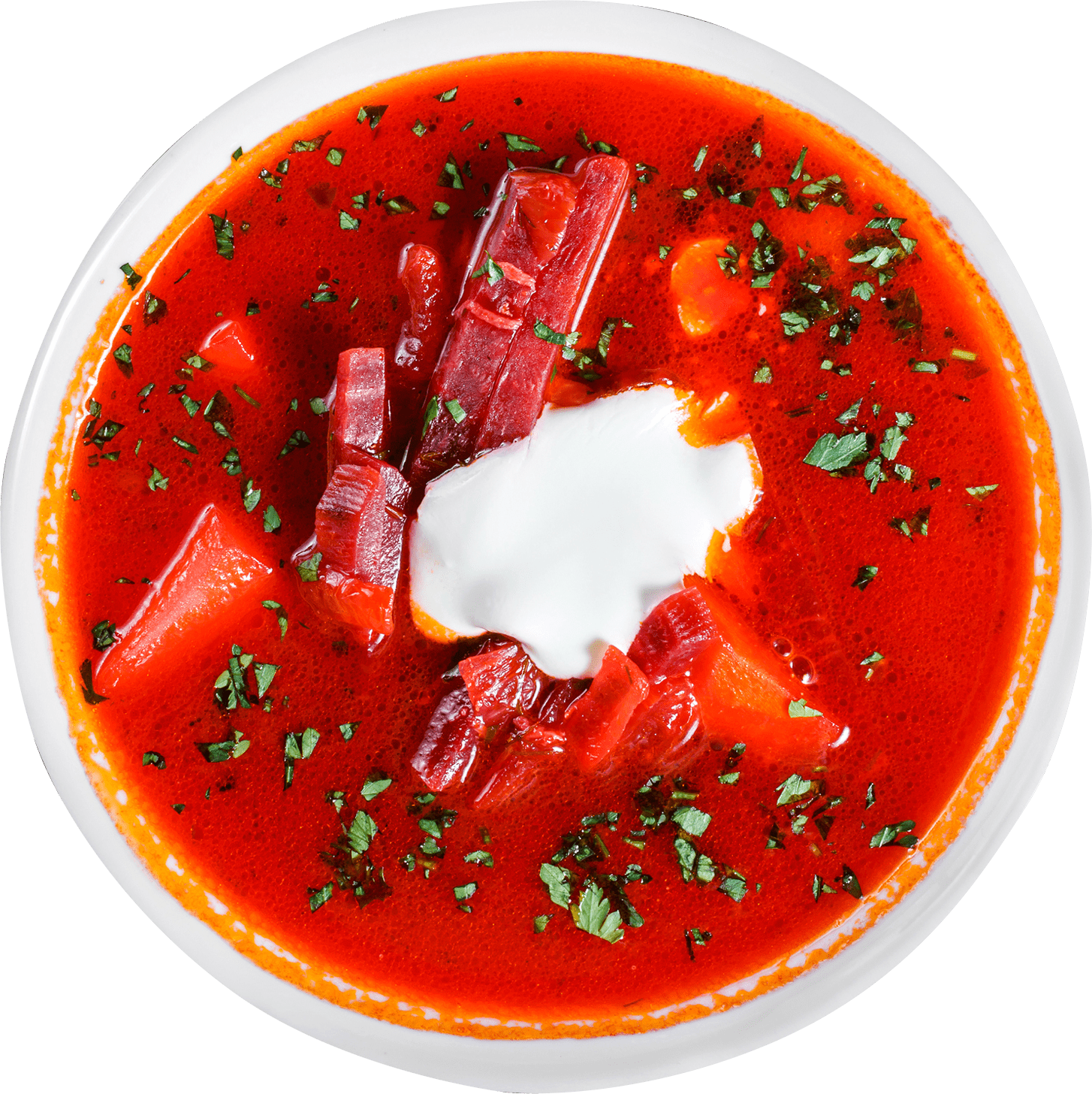 из холодной витрины. Разнообразие салатов, горячих блюд и супов, фирменных десертов и выпечки.